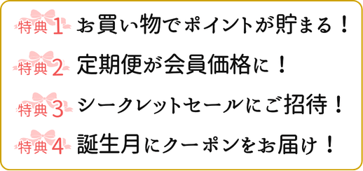 会員登録で、もっとおトク&便利に!donnerでは、無料の会員登録でご利用いただける「会員さま限定特典」をご用意しています。 ![]() 会員さまには、ご購入金額の1%をポイント還元。次回のお買い物から1ポイント=1円として使えます。 <特典2>定期便が会員価格に! 会員登録すると、対象商品の定期便がさらに割引価格でご利用可能!続けて使う商品を、もっとおトクにお届けします。 <特典3>会員限定シークレットセールにご招待! 会員さまだけが参加できる特別セールを不定期で開催!人気アイテムを驚きの価格で手に入れるチャンスです。 <特典4>誕生月にお得なクーポンをお届け! 会員さま限定で、お誕生日月には特別なクーポンをお届けします。 登録は【無料】・【所要時間1分】で完了! |